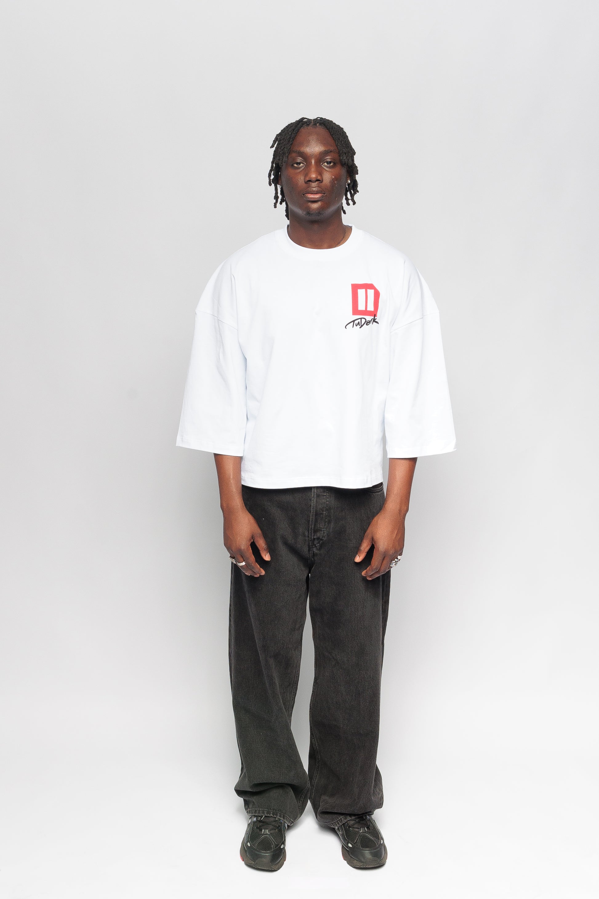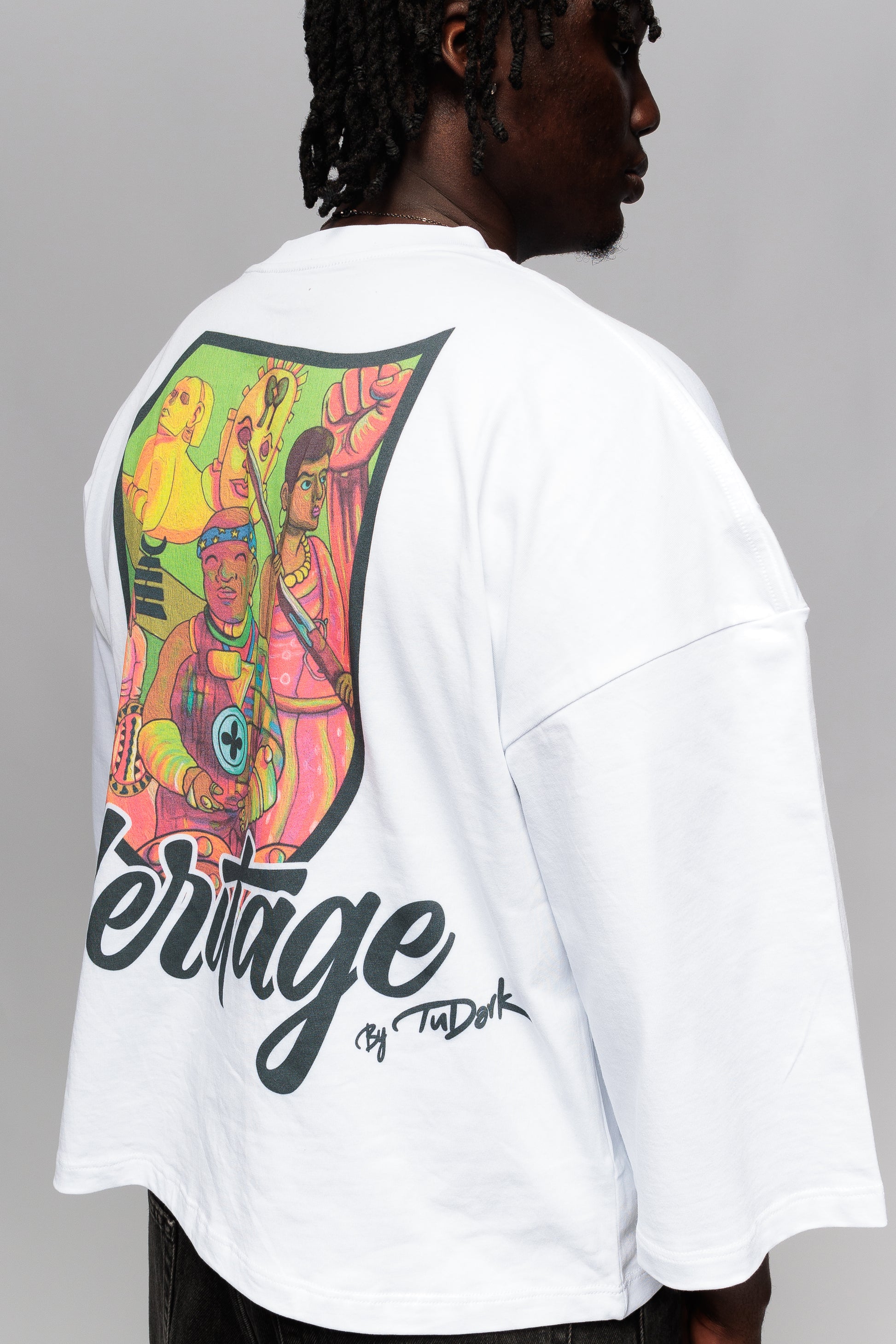 Discover the African Heritage Crop Boxy Oversized T-Shirt by tudark—a statement in modern streetwear rooted in cultural pride. Crafted in crisp white, this t-shirt combines a bold oversized fit with a cropped, boxy silhouette, dropped shoulders, and exaggerated wide long sleeves, creating an effortlessly relaxed vibe.